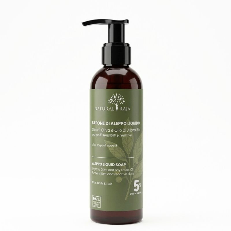 Ispirato alla ricetta ancestrale, il Sapone di Aleppo liquido 5% olio di bacche di alloro offre una detersione efficace ma equilibrata. La sinergia tra olio d’oliva (ricco di antiossidanti e acidi grassi emollienti) e olio di bacche di alloro (azione purificante e lenitiva) aiuta a rimuovere impurità e residui di inquinamento, preservando al tempo stesso la sensazione di morbidezza. La formula è senza profumo, pensata per chi cerca essenzialità e buona tollerabilità.