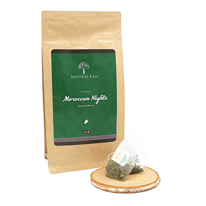 Il tè verde alla menta in filtro Moroccan Night è una deliziosa e autentica miscela che unisce il tè verde pregiato con la menta piperita marocchina, famosa per la sua freschezza e i suoi benefici per la salute. Questa bevanda è perfetta per chi desidera una pausa rilassante, che stimola i sensi e porta una ventata di freschezza in ogni sorso. Il tè verde, ricco di antiossidanti, favorisce il benessere generale e aiuta a mantenere la mente vigile e il corpo leggero, mentre la menta piperita offre proprietà calmanti e digestive, rendendolo una scelta perfetta dopo i pasti o per rinfrescarsi in ogni momento della giornata.